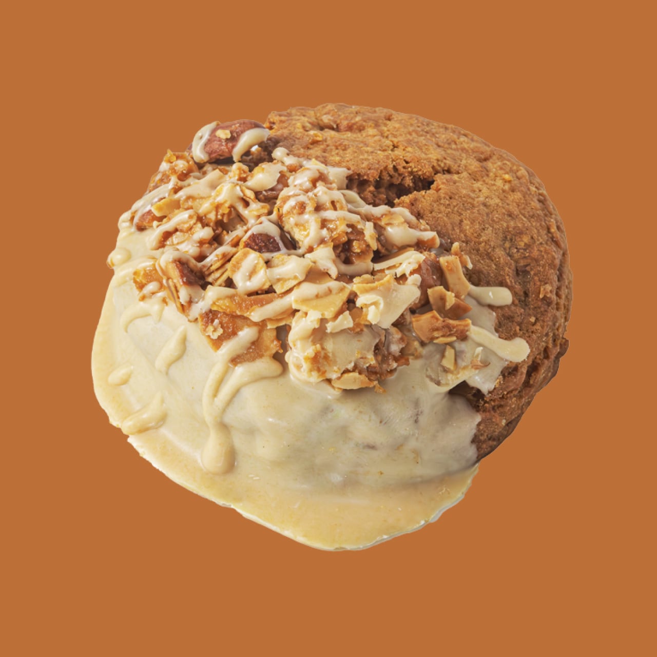 Caramel Lane(キャラメル・レーン)は、香ばしいキャラメルとナッツの風味をとじ込めた、食感も楽しいスコーンです。ザクザクとしたナッツのクランチと、なめらかなキャラメルグレーズを重ねて、ほどよい甘さとコクを引き出しました。しっとりとしたスコーン生地と、カリッとしたトッピングが生むコントラストが、食べるたびに満足感を届けてくれます。ティータイムはもちろん、朝食や軽めのランチにもぴったり。ほんのりとした香ばしさが広がり、どこか懐かしくやさしい後味が心に残ります。